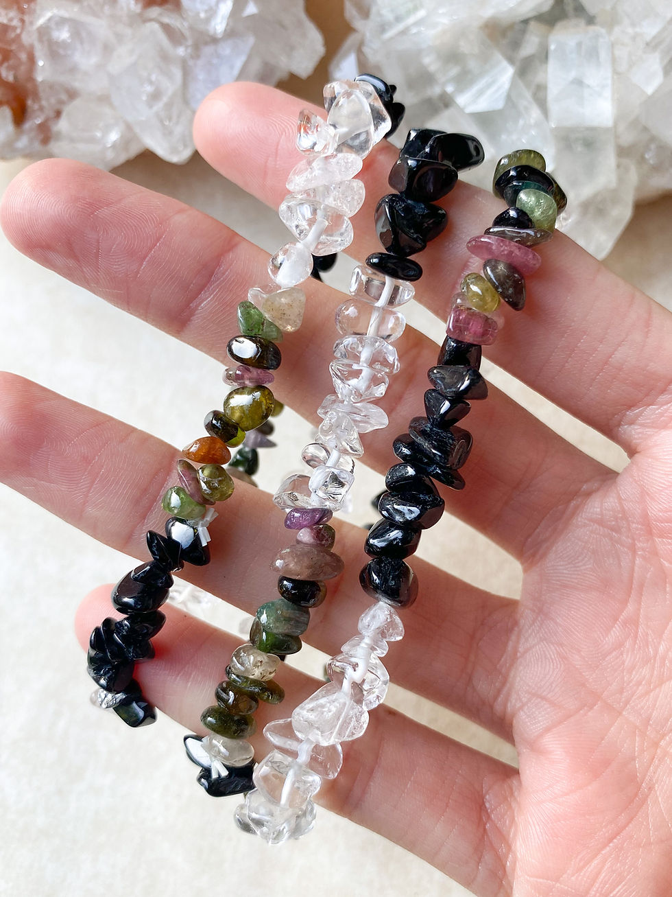 Clear Quartz, Black & Mixed Tourmaline Chip Bracelet